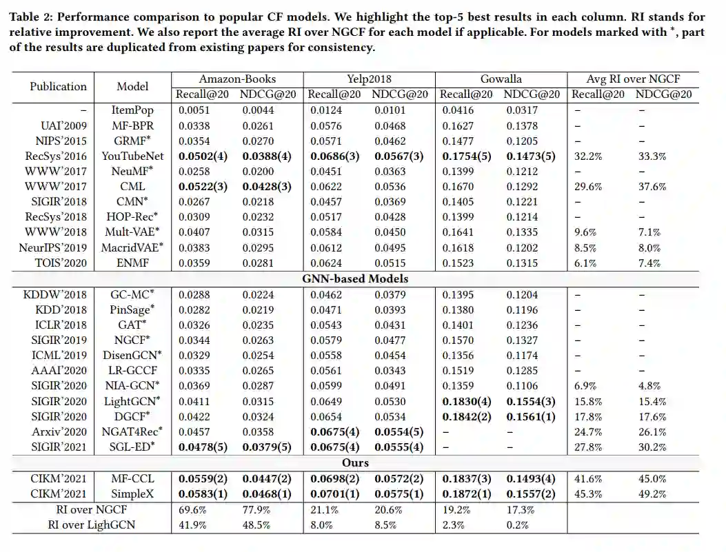 另外,本文还对比了29个经典的协同过滤模型,其实验结果如下。