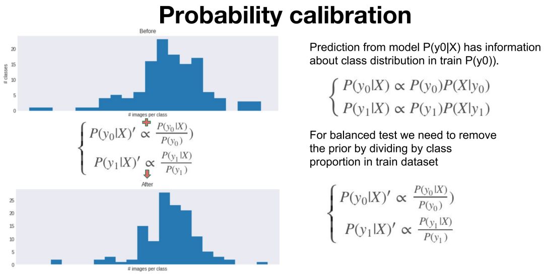 Google Research 张晓表示:「校准分为两步: a) 对于每个 label 的预测概率,除以该类别的物体数,除以对应的先验概率; b) 对所有更新后的 label 的预测概率做归一化(相加得到 1)」