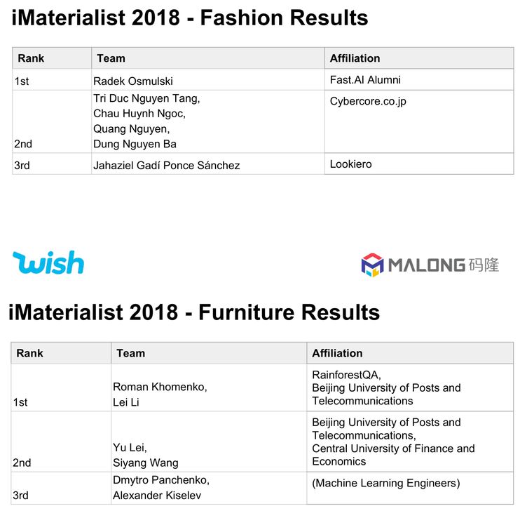 经过 3 个多月的角逐,iMaterialist 2018 挑战赛最终分出胜负: