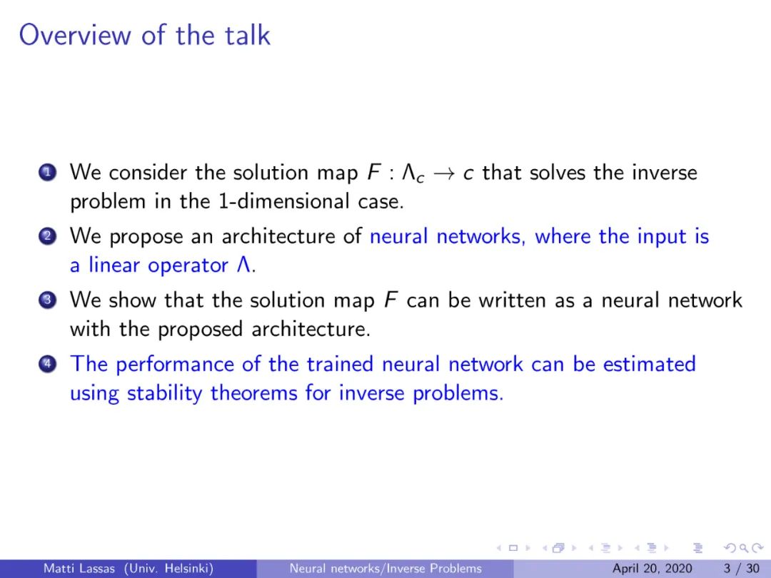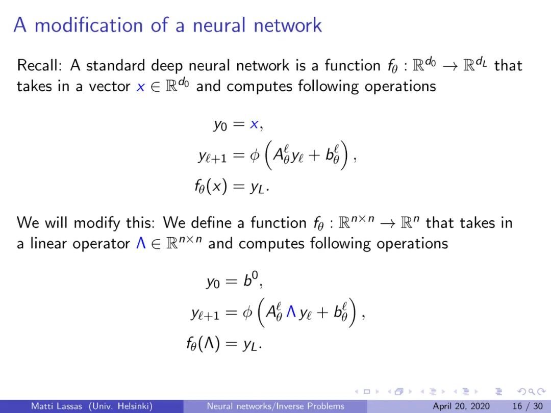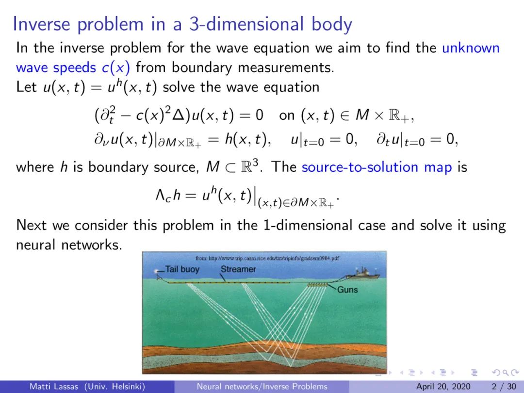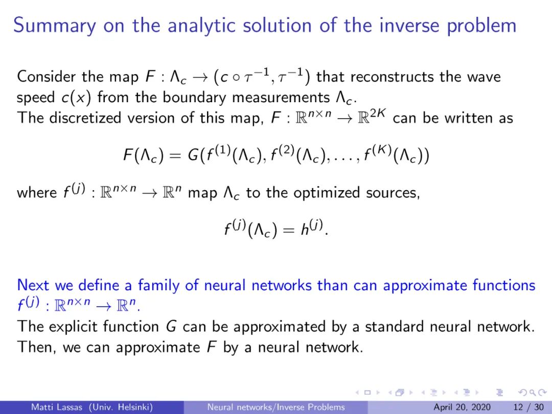 我们考虑了一种用于求解非线性逆问题的新型深度神经网络。特别地,我们考虑一个波动方程的反问题,在这个方程中,人们想要从边界测量中确定一个未知的波速。特别地,我们考虑的模型中,波的传播是由线性声波方程在一个区间。所研究的神经网络的一个新特性是数据本身在网络中形成层次。这对应的事实是,逆问题的数据是一个线性算子,它将边界源映射到从未知介质反射回来的波的边界值。虽然波动方程的建模是线性的,但求方程系数的逆问题是非线性的。利用经典的逆问题理论,设计了一个神经网络结构来求解求未知波速的逆问题。这使得严格分析神经网络的特性成为可能。