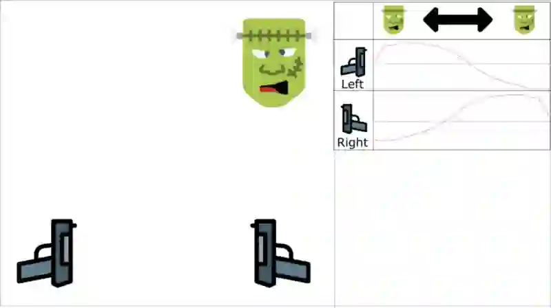 然后下一个怪物也来自右边(概率为70%),智能体将使用右枪射击。再次命中,这很好!