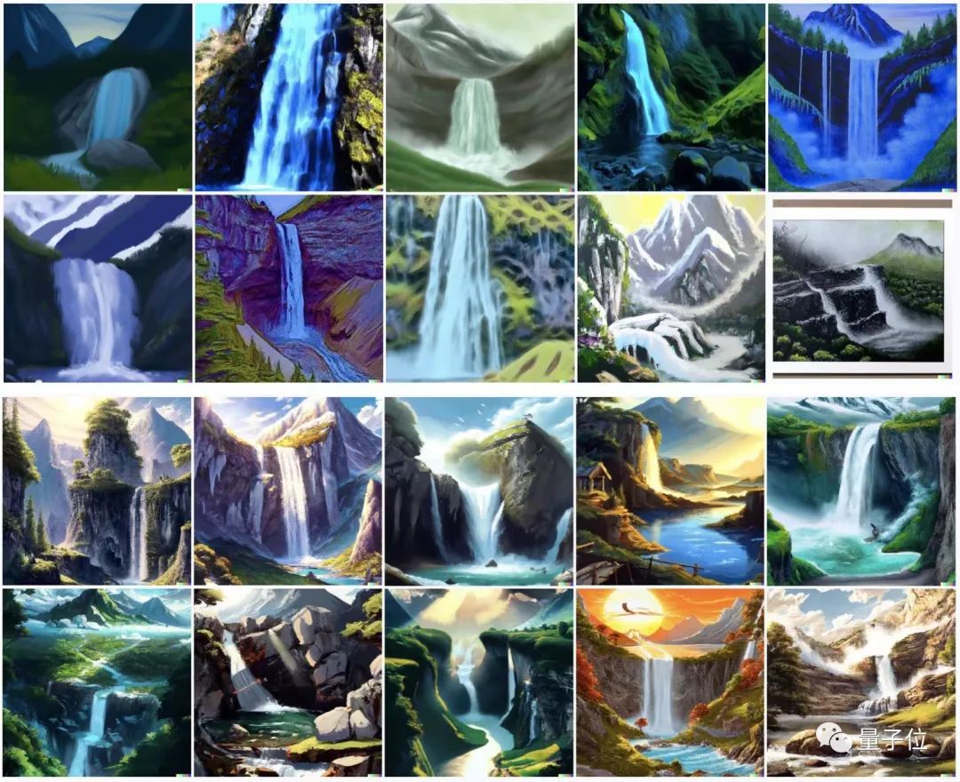猜猜看,使用DALL·E返回“一幅非常漂亮的画,画中一座山紧邻瀑布”和“一幅非常非常非常漂亮的画,画中一座山紧邻瀑布”两个提示,哪个输出的结果会更好?