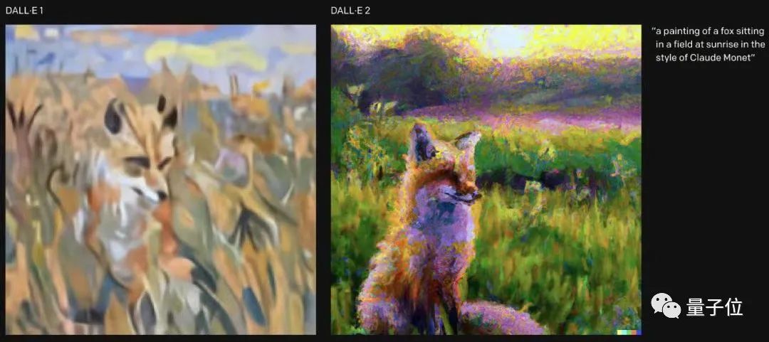 创建具有特定画家风格的图像就是一个典型案例,比如输入提示“日出时分安坐在田野里的狐狸,莫奈风格”,你将得到: