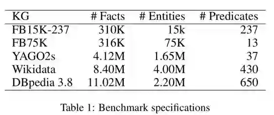 本文的关注点是 scalable,所以选取做比较的数据集都是大规模知识库