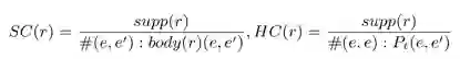 根据 score function 抽出来的 rule 还要进过筛选,具体做法是先排除掉 support degree 小于 1 的 rule,再过滤掉 standard confidence<minSC 和 head coverage<minHC 的 rule。