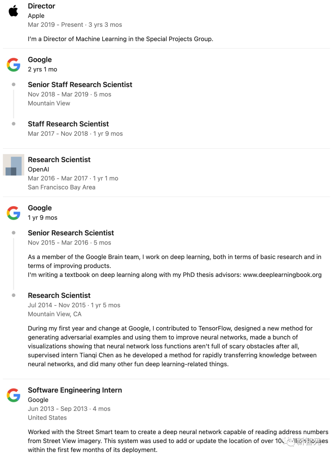 其实,从Goodfellow老师的履历可以看出:谷歌系统的子公司,简直是他的缓冲区和备胎。