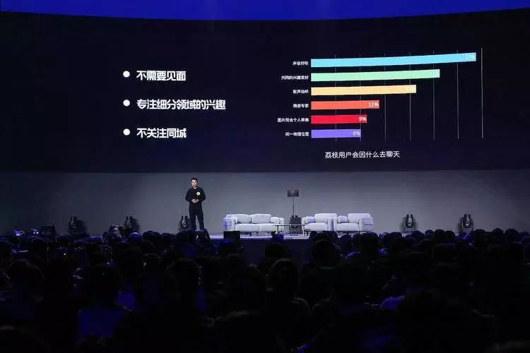 他们在我们平台上的社交,他更关注的是一些我们很不同的东西,因为荔枝是一个声音平台,声音好听不好听非常重要,我们的工具做了很多声音美化的东西,还有就是共同的兴趣爱好。比如说二次元,但是二次元是一个很范的,二次元里面分了很多很细的,二次元里面有做剧的,有古风的,古风的跟二次元又不一样,他分的很细,但是并不是所有的二次元代表一种兴趣,里面再分得更细,你是不是我最细的那个领域,他们非常关注这些。