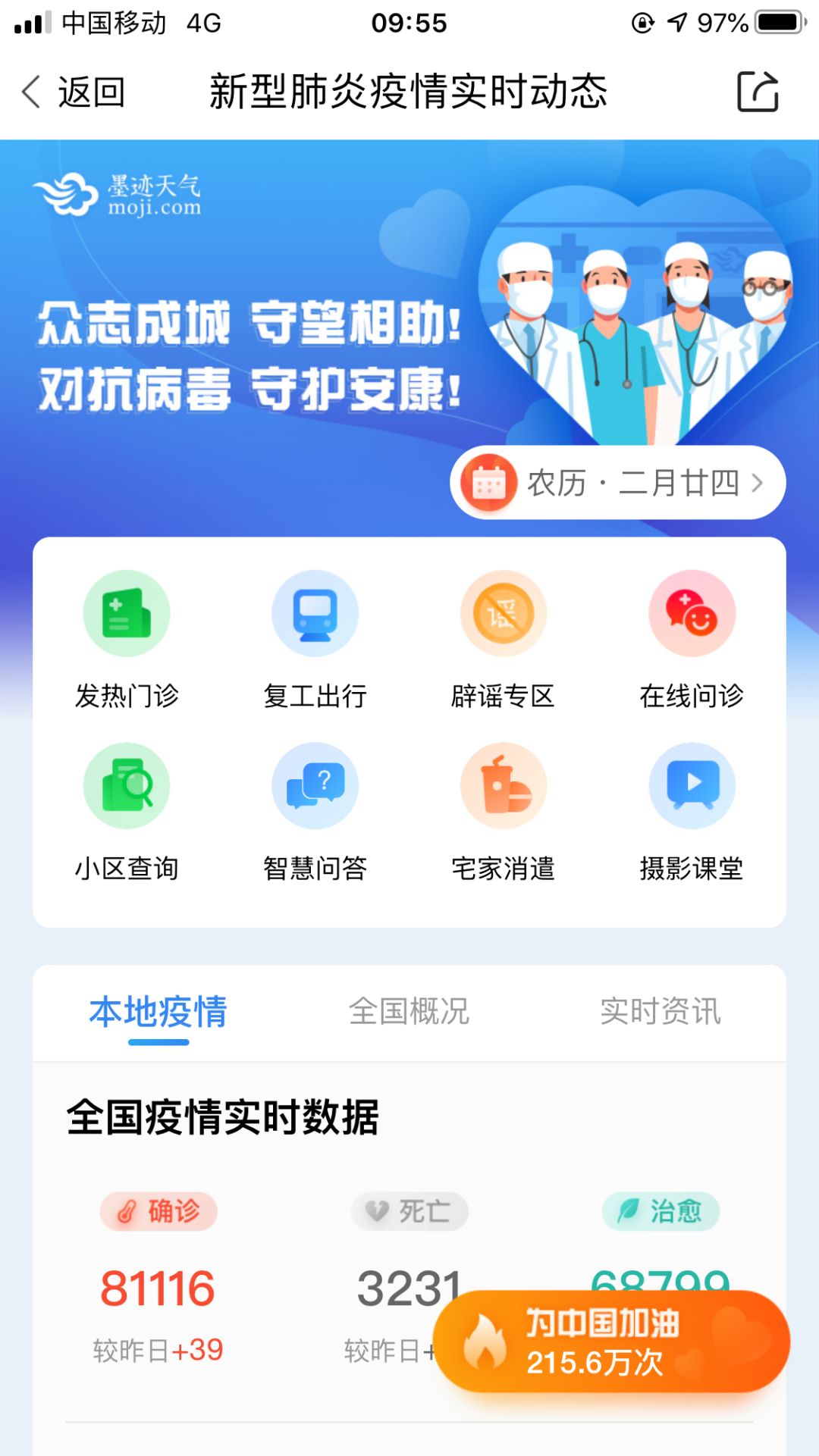 天气查询作为生活中最高频的事情,无疑是保证信息通达的最佳渠道之一。因此,在疫情防治期间,让疫情信息像天气预报一样融入普通人生活,从而实现广泛的社会动员,显然变得十分的重要。在此期间,作为拥有6.5亿用户的墨迹天气充分发挥气象行业头部企业的作用,率先采取了多项措施。