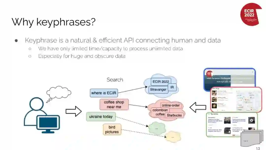 关键短语以短语列表的形式表示文本中最重要的信息,它通常可以作为有效总结文本文档的代理。近年来,随着深度神经网络技术的发展,关键词自动识别技术得到了迅速发展。随着自然语言理解的进步,以及自然语言生成技术使模型能够预测文本中未提及的相关短语,关键词提取方法的性能得到了极大的提高。我们将总结文本的任务命名为关键词提取。