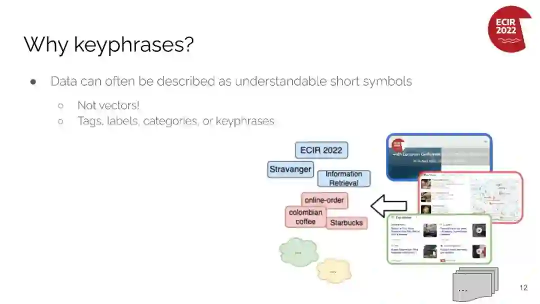 在这个半日的教程中,我们提供了一个关于关键词提取的全面概述,以及使用流行的模型和工具的实践。本教程涵盖了从基本任务到高级主题和应用的重要主题。在课程结束时,学员将更好地理解1)经典的和最先进的关键词提取,2)当前的评估实践及其问题,以及3)当前的趋势和未来的关键词提取研究方向。