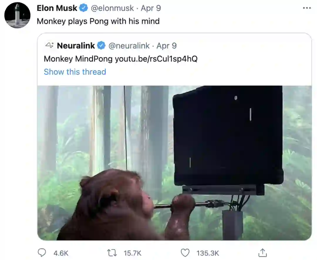 近日,马斯克还通过视频公布了Neuralink的重要成果,最新实验可以让猴子用意念玩乒乓球游戏。