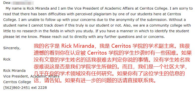 没办法,小 s 赶紧联系 Cerritos College 学术负责人,把文章和证据发给他们,希望他们帮忙确定一下是谁做了这件事,或者直接把文章撤销发表。。