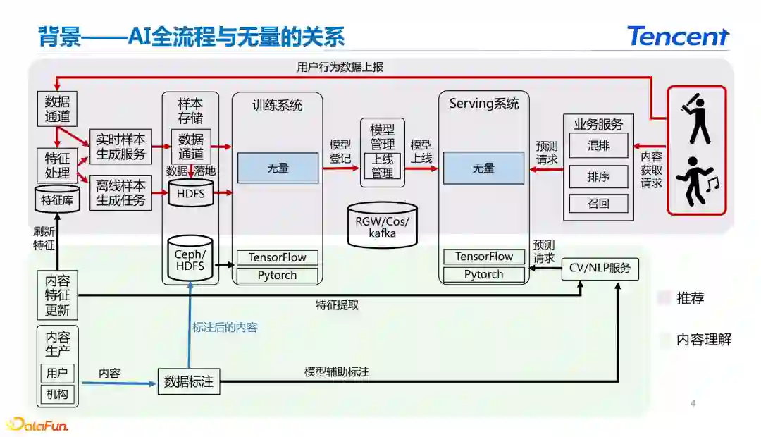 导读:随着推荐技术的不断发展,推荐系统的应用变得更加广泛。相比CV/NLP场景,推荐场景的模型训练和线上预测需要更强的实时性。因为场景的多样性,推荐系统的优化目标也更为复杂多变。推荐业务用户量大、实时服务吞吐量高、优化目标多变等特点使得常用的高维模型的训练和预测存在许多挑战。本次分享主要针对腾讯无量深度学习系统在推荐类业务中的应用。