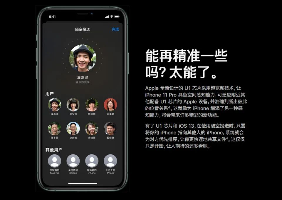 U1 超宽频芯片是苹果在去年 iPhone 11 系列中首次引入的新元件,在其加持下能够让设备具备空间感知能力,可感应附近其他配备 U1 芯片的 Apple 设备,并准确判断出彼此的位置关系,但目前能够实现的功能还较为单一,只能在使用 AirDrop 时实现「指向优先排序」的功能。但对于未来,这枚芯片将会随着 AR 布局实现更大的作用,甚至可能借助新的 CarKey API 将设备变为「车钥匙」。