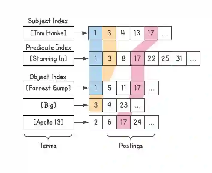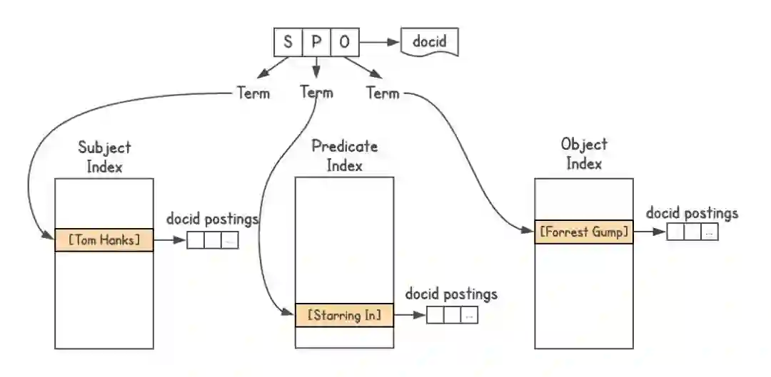 我使用了Google的搜索索引系统,为每个三元组分配了一个Id,并构建了三个索引,分别为S,P和O.另外,索引允许附件,所以我附上了每个实体的类型信息(即演员,书,人等等)。