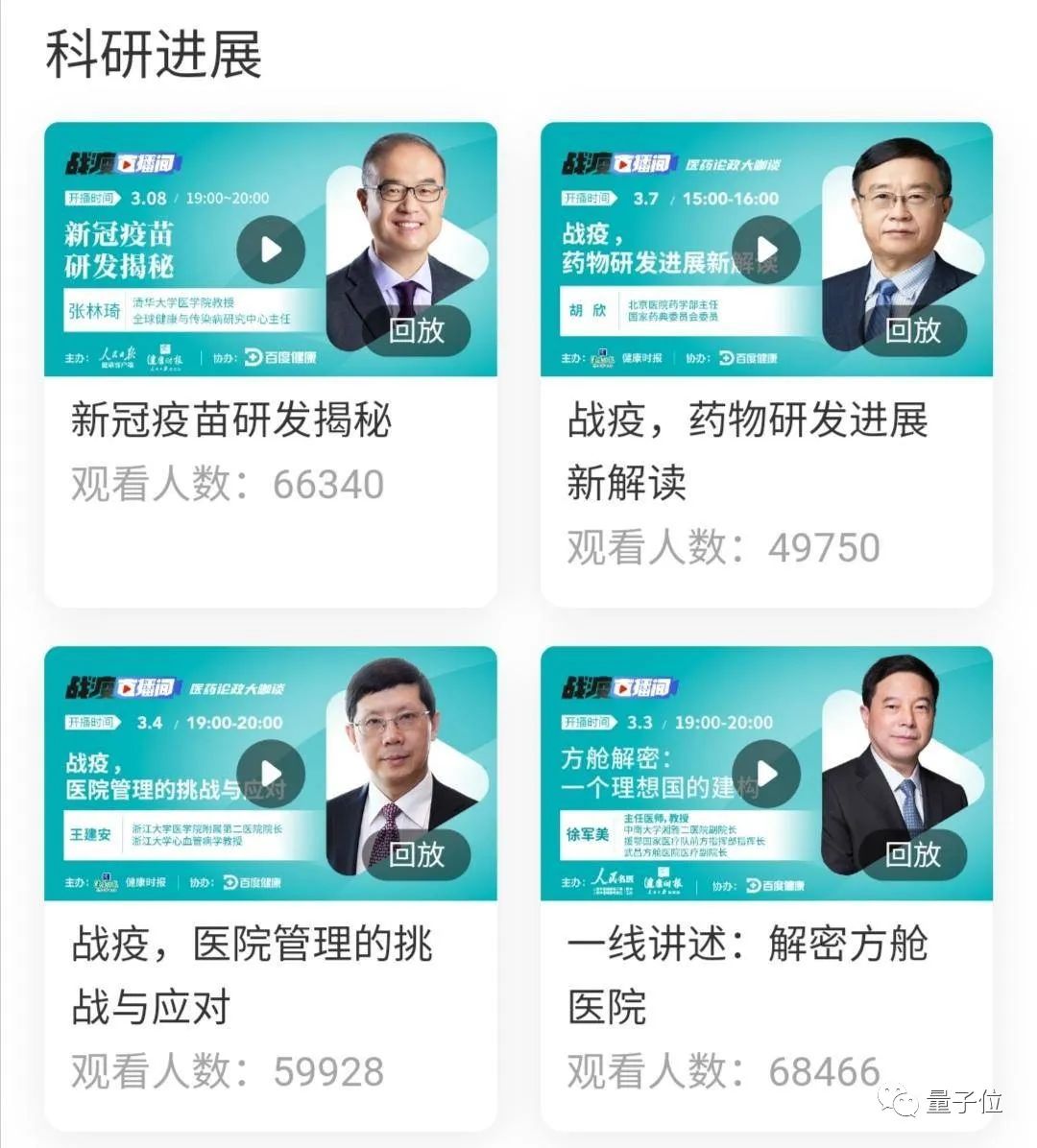 还有刚才提到的“战役直播间”这样的医生科普直播,也是因为百度健康平台上早已聚集大量的专业权威医生和专家。