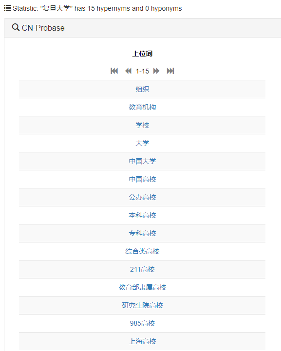 CN-Probase是由复旦大学知识工场实验室研发并维护的大规模中文概念图谱,是目前规模最大的开放领域中文概念图谱和概念分类体系,isA关系的准确率在95%以上。相比较于其他概念图谱,CN-Probase具有两个显著优点: