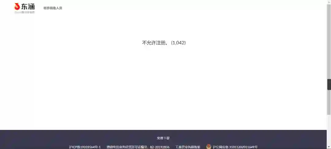 而个人用户注册的时候,系统也显示“不允许注册”: