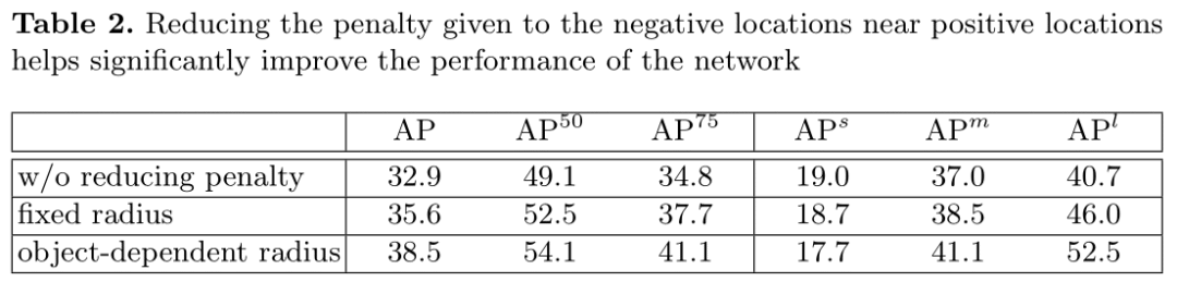 固定半径设为2.5。减少负样本角惩罚对预测中,大尺寸目标帮助较大。