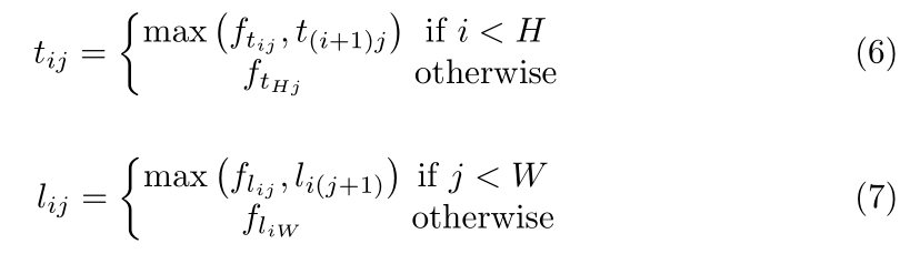 右下角的corner pooling层类似,分别最大池化(0,j)到(i,j)和(i,0)到(i,j)间的向量。