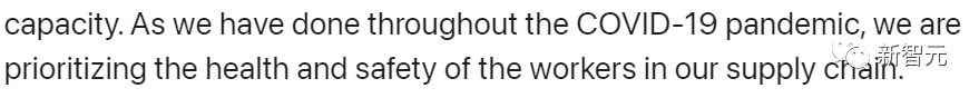 「我们正在与供应商紧密合作,在确保每个工人的健康和安全的情况下,恢复到正常的生产水平。」