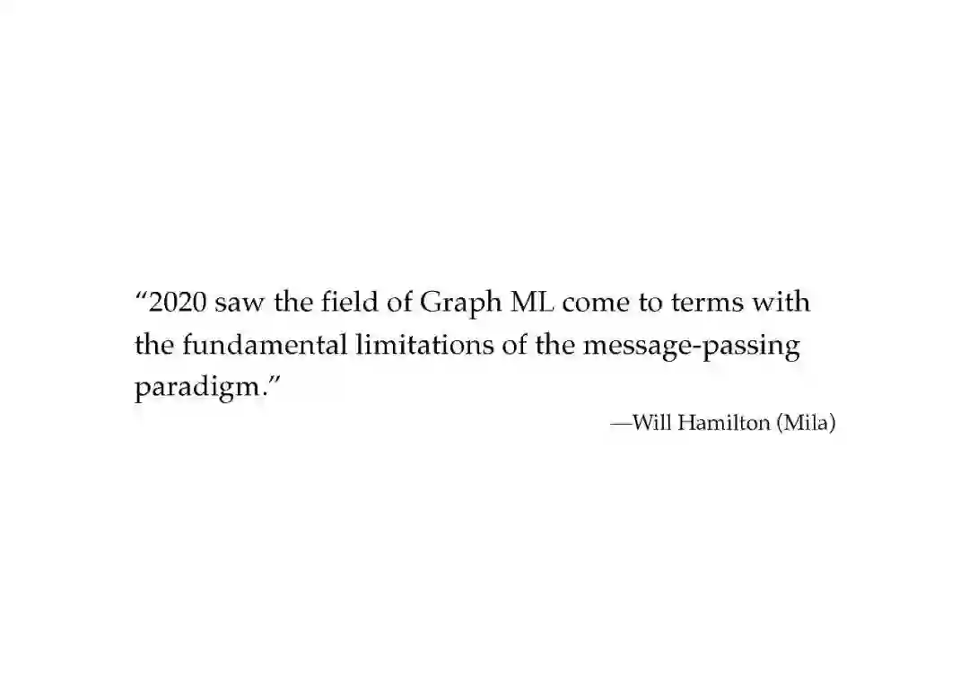 消息传递仍然是 GNN 的主导范式。在 2020 年,研究社区意识到了了消息传递 GNN 的不足之处,并寻求这种范式之外的更具表现力的架构。2021 年,很明显,消息传递仍然占据主导地位,因为有的研究工作表明,将 GNN 应用于子图可以获得更好的表达能力。