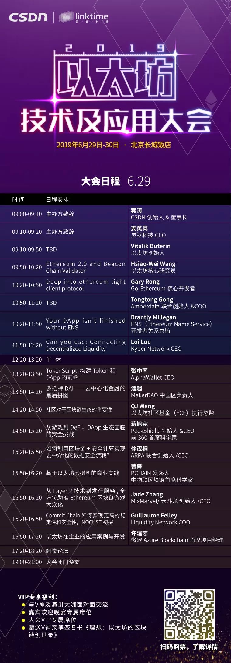 V神来北京啦!6月29-30日,2019第二届以太坊技术及应用大会将在北京重磅开启,届时V神将携以太坊核心团队与国内外区块链大咖带来前所未有的以太坊开发干货,包括: