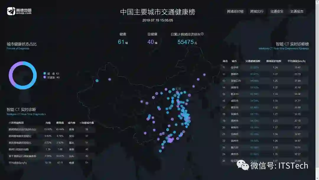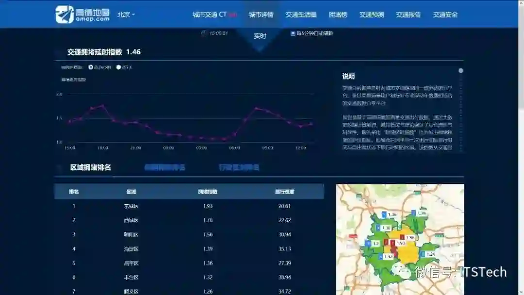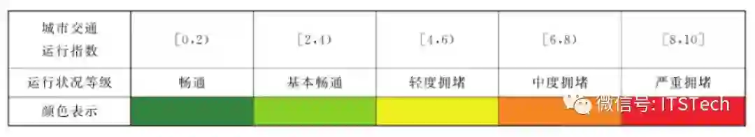 其中对城市交通状况的综合评价指标主要参考交通拥堵指数和平均速度,交通拥堵指数=实际通行时间/自由流通行时间,类似国标的行程时间比。