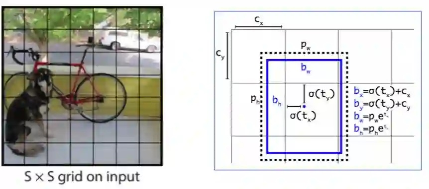 YOLO系列算法:如下图所示,其中左图取自YOLOv1[8],右图取自YOLOv2[9],需要说明的是YOLOv1相比于YOLOv2在坐标回归的时候没有anchor的概念。YOLO系列算法在构建回归目标时一个主要的区别就是如果将图像划分成SxS的格子,每个格子只负责目标中心点落入该格子的物体的检测,如果没有任何目标的中心点落入该格子,则为负样本。