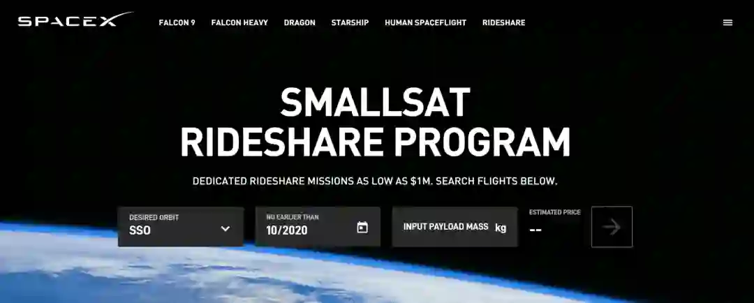 SpaceX 公司为此还创建了门户网站,可以让客户以相对灵活的「按需」方式预订SpaceX的发射服务。预订过程就像预订一个新款特斯拉一样轻松。