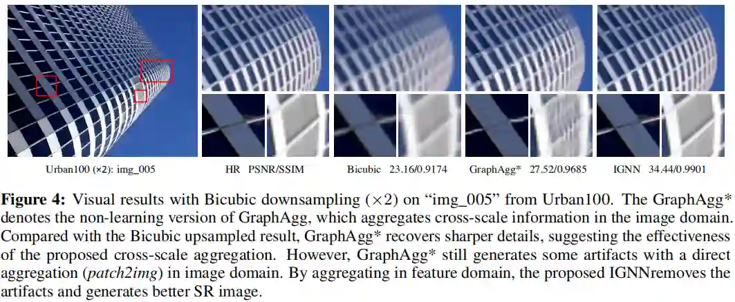 虽然该文并非首个将图像块跨尺度自相似性引入到图像超分领域,但其创新性的采用图方式进行最近邻相似块的搜索,同时进一步将图像超分的指标刷到的新的高度。