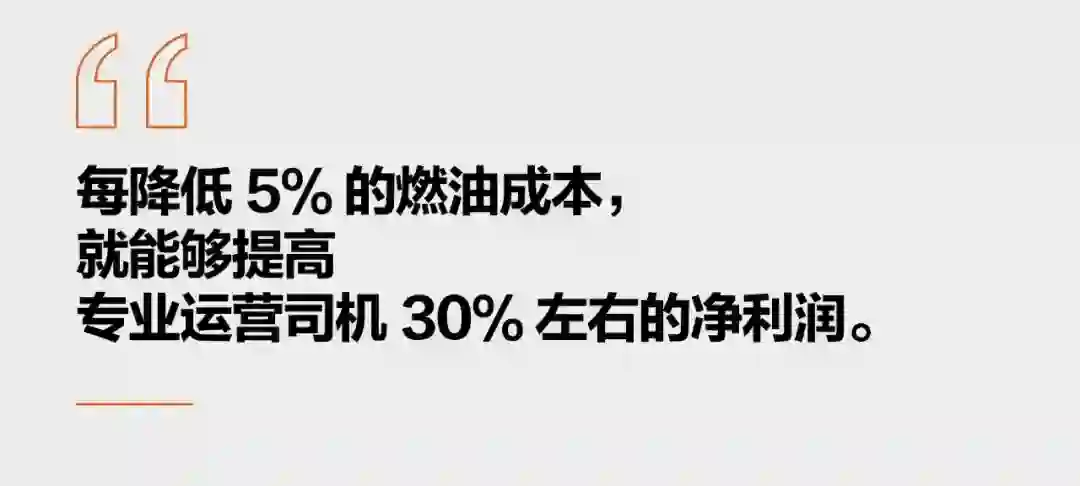 “每降低5%的燃油成本,就能够提高专业运营司机30%左右的净利润。