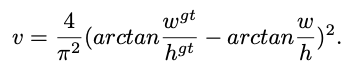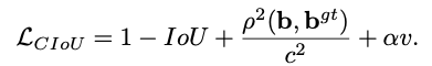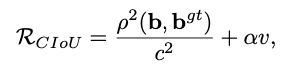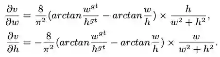 论文考虑到bbox回归三要素中的长宽比还没被考虑到计算中,因此,进一步在DIoU的基础上提出了CIoU。