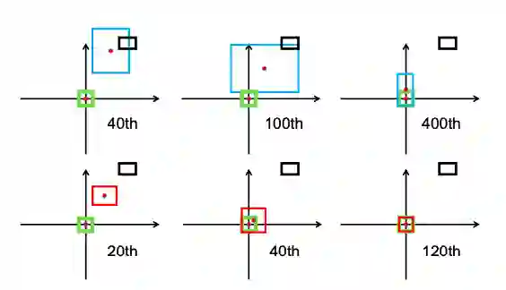 为了全面地分析IoU loss和GIoU的性能,论文进行了模拟实验,模拟不同的距离、尺寸和长宽比的bbox的回归情况。