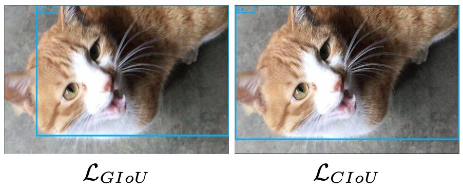 论文提出了两种新的IoU-based损失函数,DIoU loss和CIoU loss:
