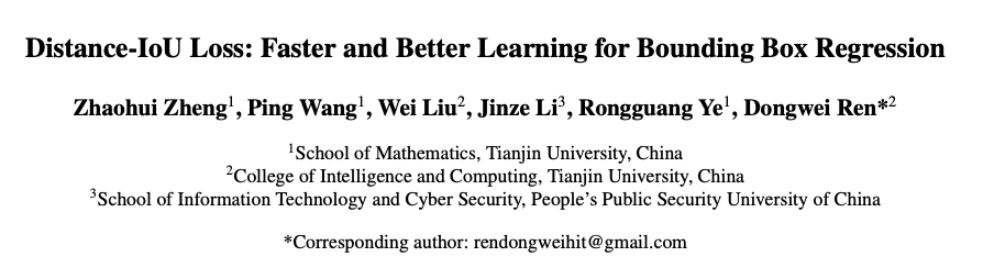本文对发表于 AAAI 2020 的论文《Distance-IoU Loss: Faster and Better Learning for Bounding Box Regression》进行解读。