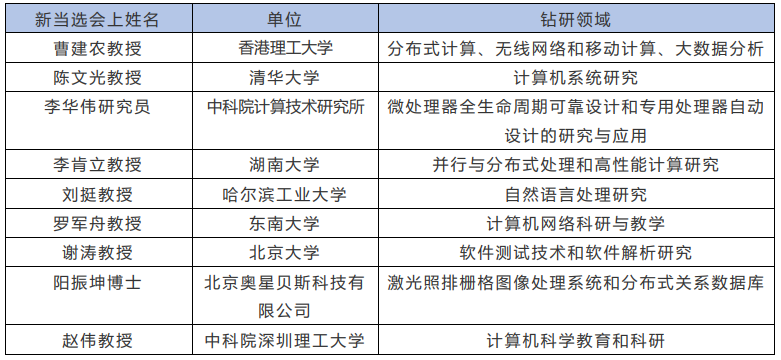 CCF 还宣布有 9 位研究人员当选会士。目前,CCF 会士人数 150 人,占专 业会员人数的 0.32%。