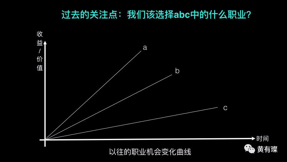 在上一个时代的职业环境中,各种职业的发展上升曲线往往是线性的和稳定的,这意味着,很多时候,在职业生涯中,选择从事什么样的职业,往往就决定了你能走到什么样的高度。就像是,曾经你在大学毕业后,到底是去选择做一名教师,还是一名医生,还是一名工程师或者银行家,往往就注定了你在此后10年20年的收入、社会地位等。