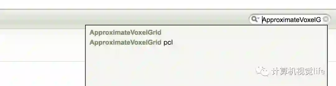 第二步:在右上角搜索框内输入我们要查询的模板类名称,这里我们输入ApproximateVoxelGrid,如下所示,会自动跳出来匹配的结果