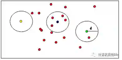 下图就是该类的筛选方法。比如你指定了一个半径d,然后指定该半径内至少有1个邻居,那么下图中只有黄色的点将从点云中删除。如果指定了半径内至少有2个邻居,那么黄色和绿色的点都将从点云中删除。