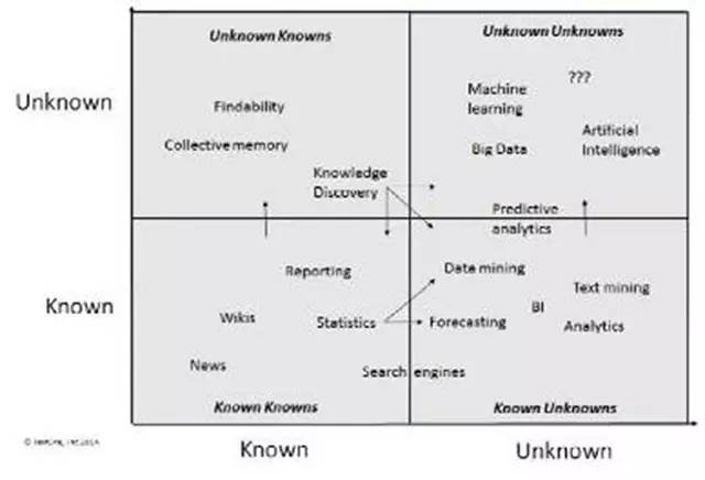 到目前为止,我们查询的目标是从所有噪音摸索有价值的信号。以掌握正确的信号,前提包括清晰的研究问题、数据规模较小、数据集更完整。前美国国防部长DonaldRumsfeld所谓的已知的已知(Known Knowns)和已知的未知(Known Unknowns)。Rumsfeld采用这概念讨论反恐情报的噪音,但也适用于分析和研究(请查看以下模式),做明智的业务决定。当然,“未知”的象限需要你的公司累计经验才可以比较进行有效探讨。