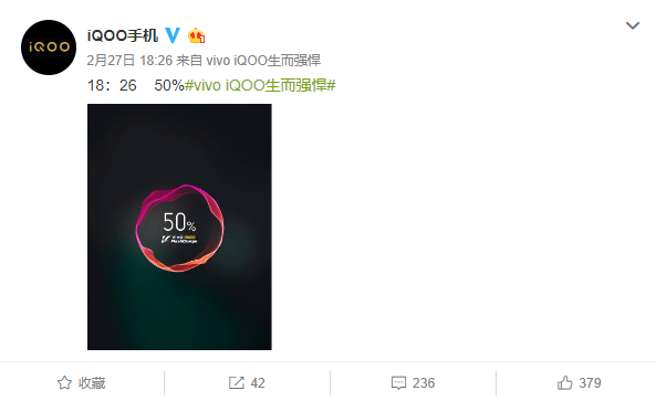 2月12日,iQOO 手机正式登场,vivo 官方账号也进行转发确认其子品牌亮相。