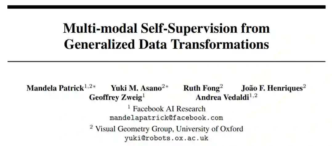 1. Multi-modal Self-Supervision from Generalized Data Transformations, arxiv