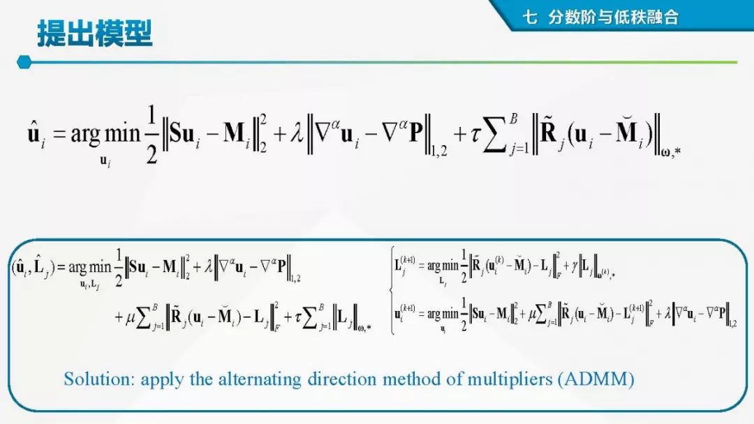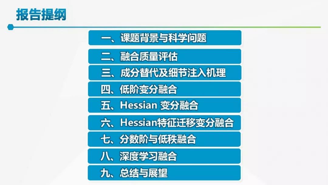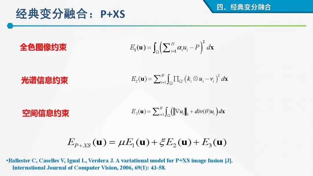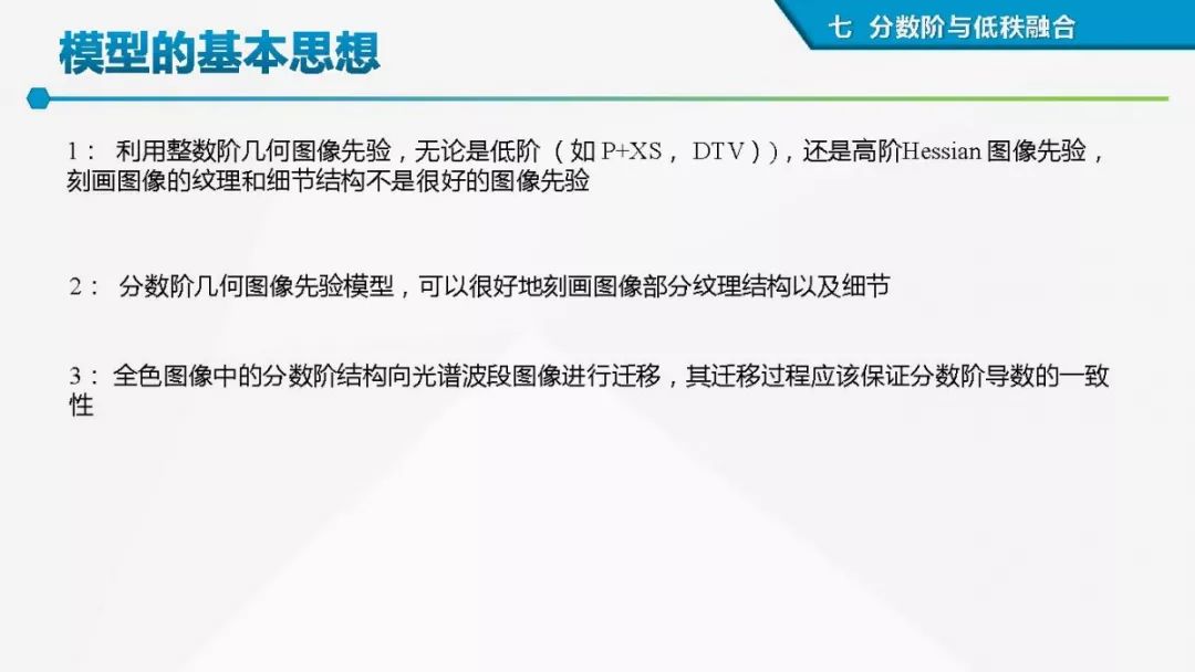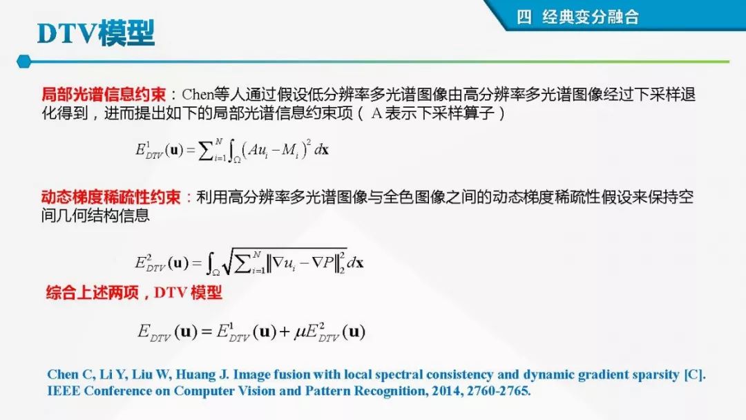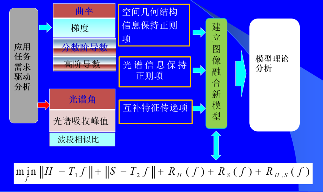 其中着重探索了一类基于变分模型的融合方法,这些方法背后的建模动机是将空谱图像融合建模为两路不完整(或欠采样)互补测量数据重建潜在图像的过程。重点论述变分融合计算体系与方法。其脉络涵盖低阶到高阶正则化,由整数阶到分数阶正则化的方法。
