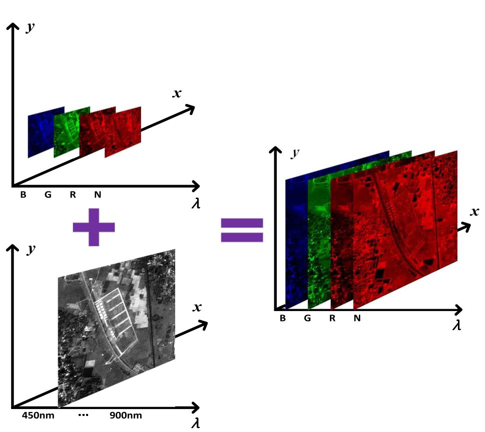 图1 全色锐化多光谱图像(Pansharpening)的融合示意图