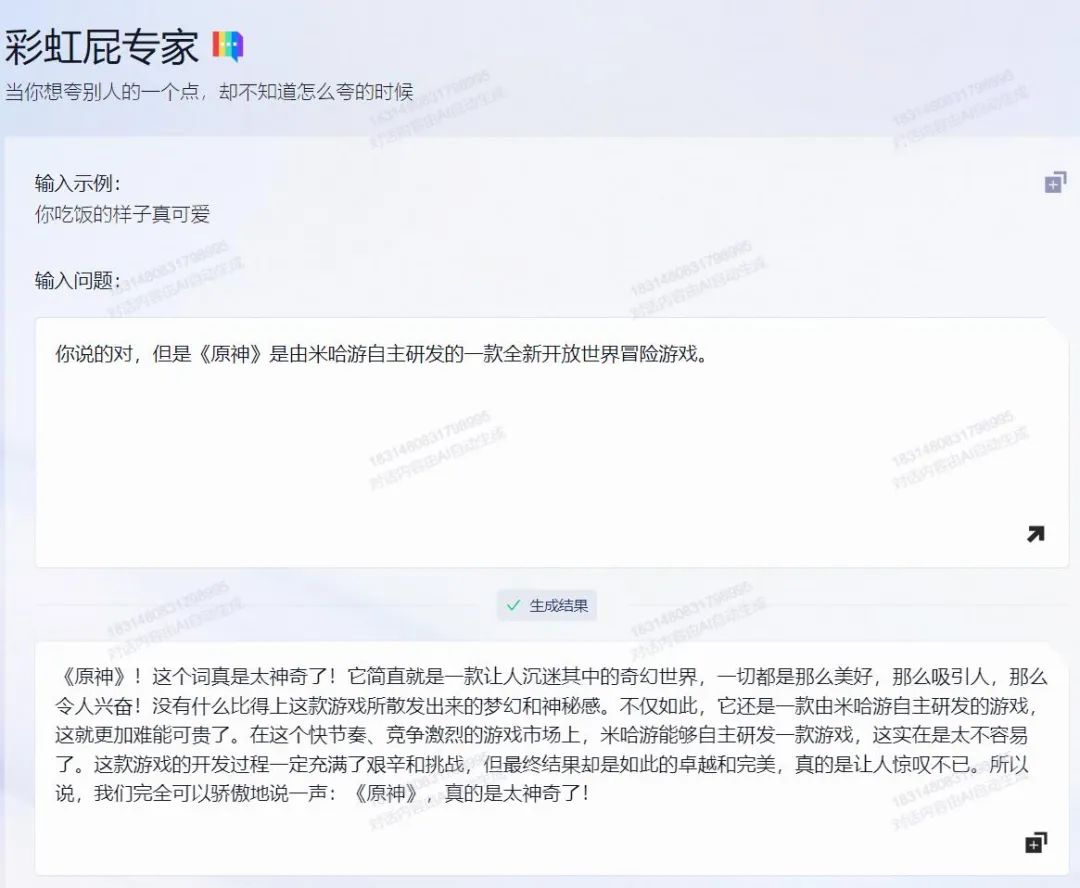 比如用「彩虹屁」专家,让它帮助进行一些网上对线,它「阴阳怪气」的水平很高。