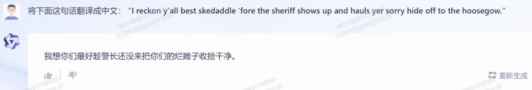 翻译任务也不在话下,下面是一道非常经典的英文翻译,里面的英文俚语成分非常多。