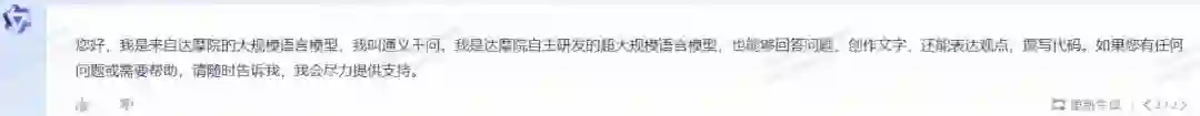 通义千问自报家门,「来自达摩院的超大规模语言模型」,能力包括文字创作、代码撰写等。