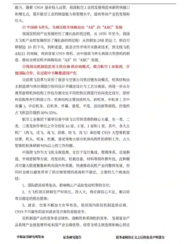 ②我国民机制造沿用主供应商-供应商模式,联合航空工业集团,开放国际合作,在过程中不断推进国产化