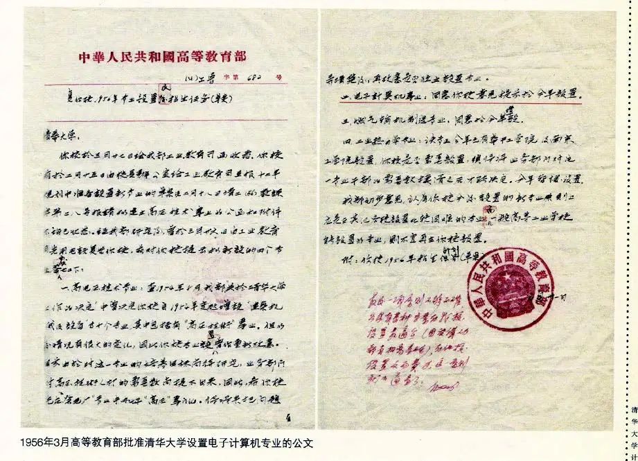图2 1956年3月高等教育部批准清华大学设置电子计算机专业的公文